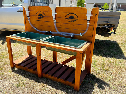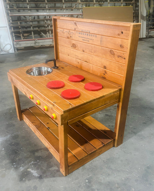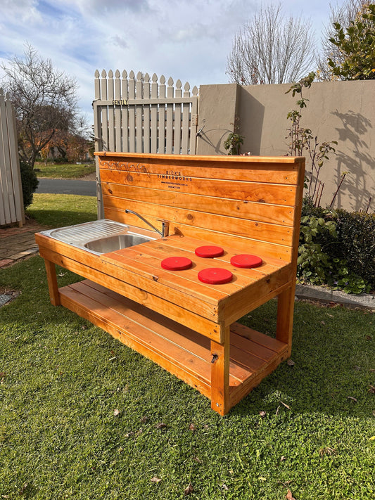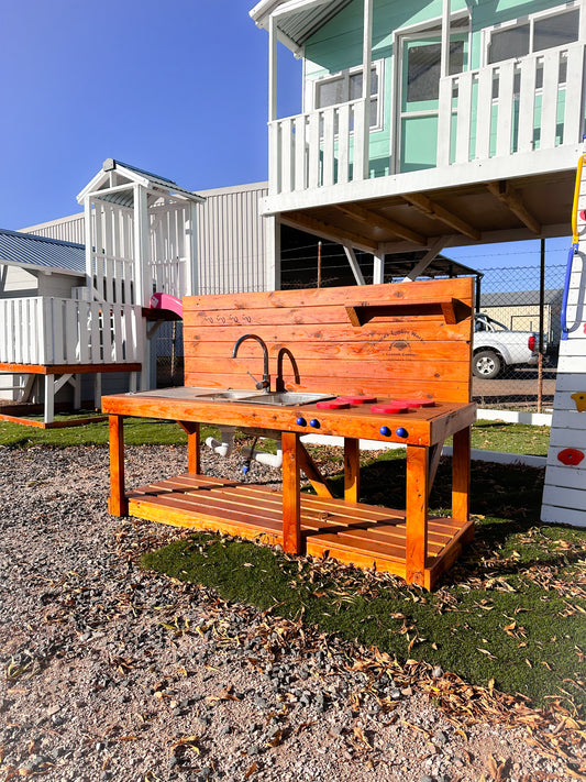 Handmade Mud Kitchens, using recycled sinks and plumbing so that you can hook them up to your outdoor garden hose.
