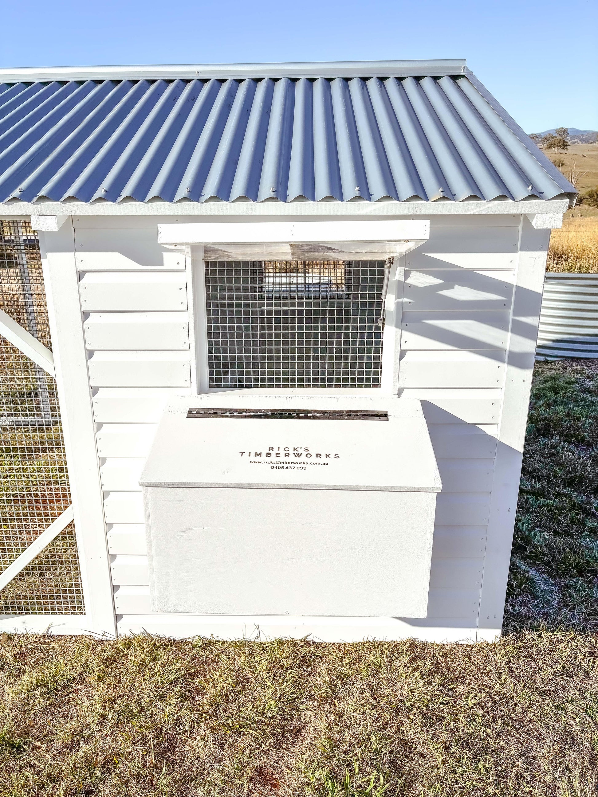 All our coops are proudly handmade, in Forbes. We don't import any parts, so if you are looking at any custom adjustments such as changing the location of a door, window, or nesting box, we're more than happy to discuss your ideas.