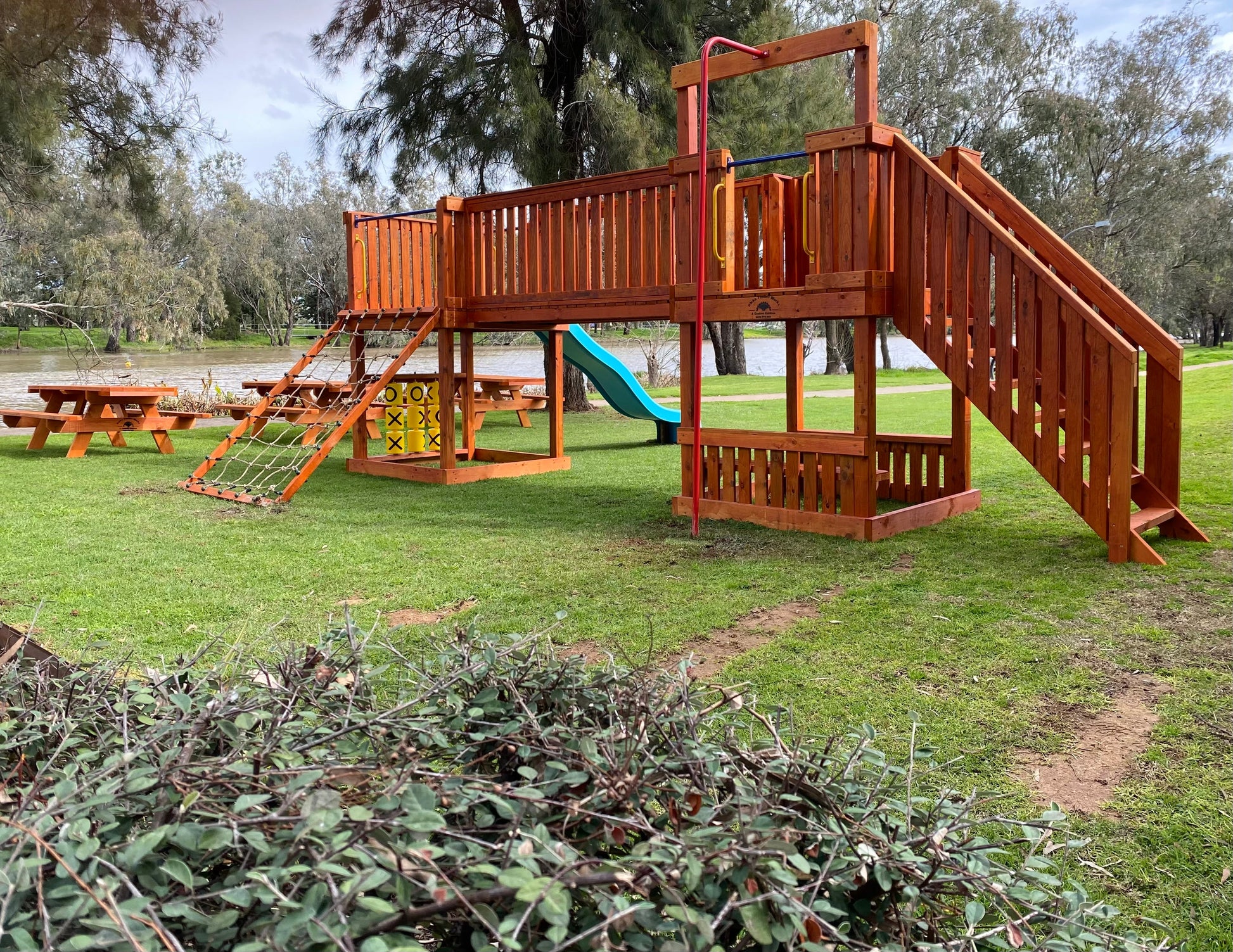 They can play under the decks with the tic-tac-toe, the shop counter and there's a comfortable place to sit on the timber bench seat.