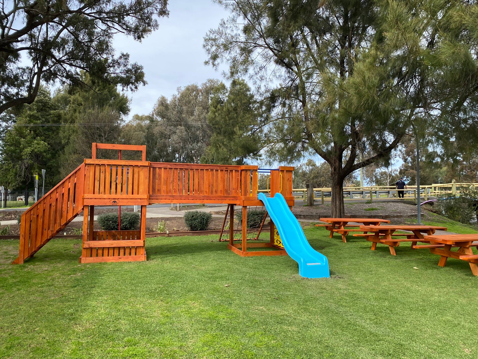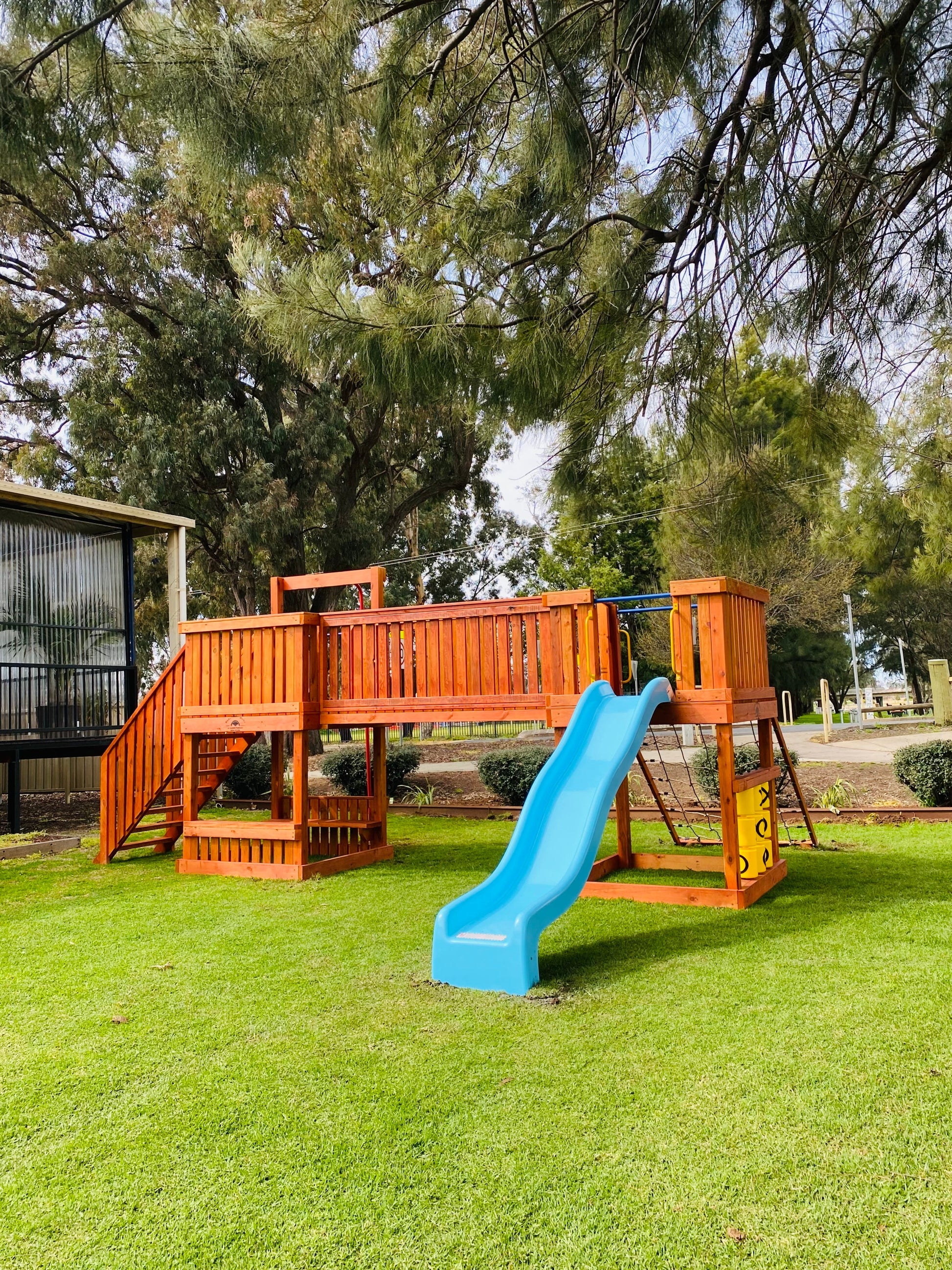 Each deck floor is 1500mm off the ground and has a 3.1m fibreglass slide to suit this deck height. You can choose the colour of your slide when you order.