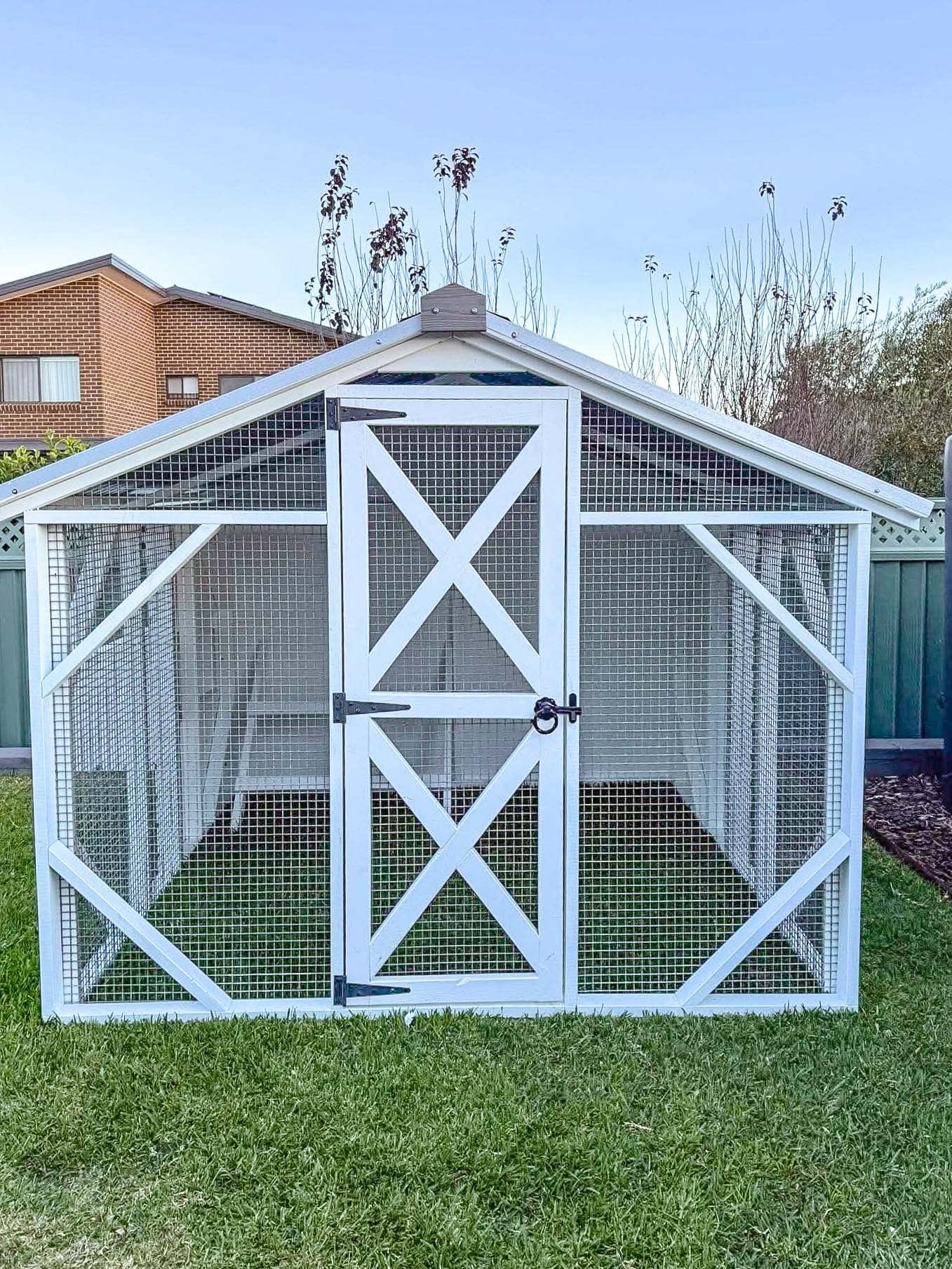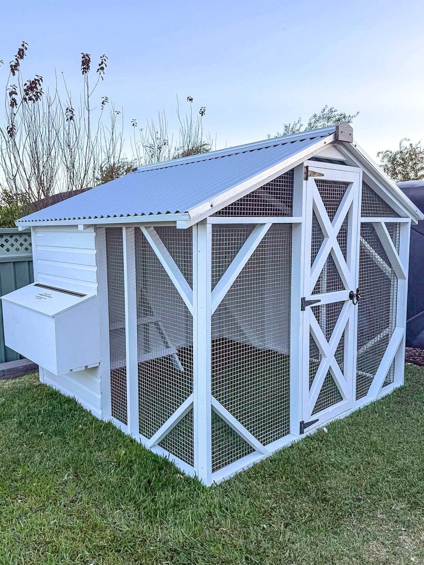 The Hen Haven comes at a great price, and it includes a beautiful white paint finish that adds a touch of elegance to any backyard. Plus, it features a durable corrugated roof that provides protection from the elements. You’ll notice a heavy-duty weld mesh in some photos. We prefer to use this over chicken wire, as it’s a lot stronger and fox resistant. We don’t charge you any more for this.