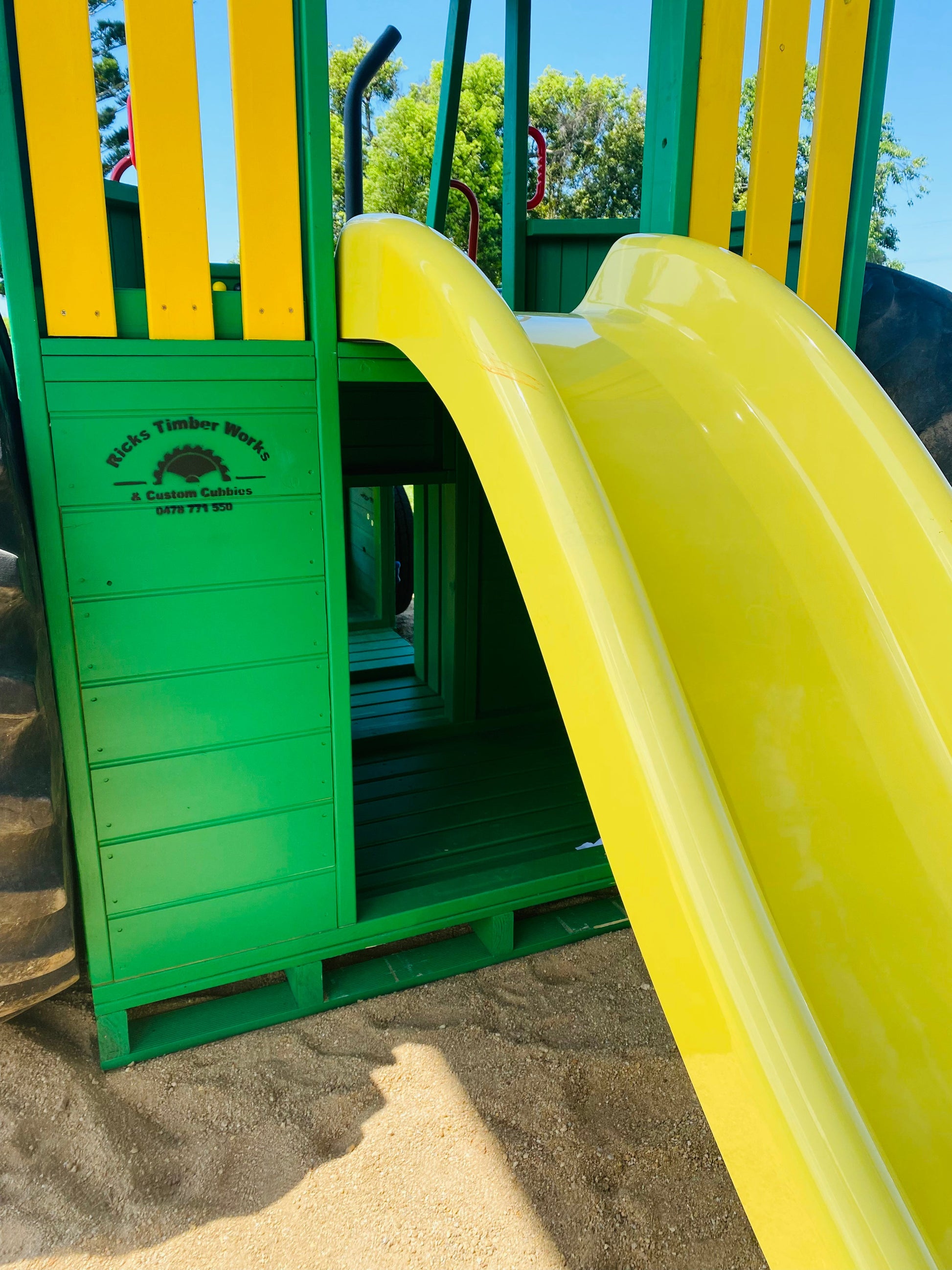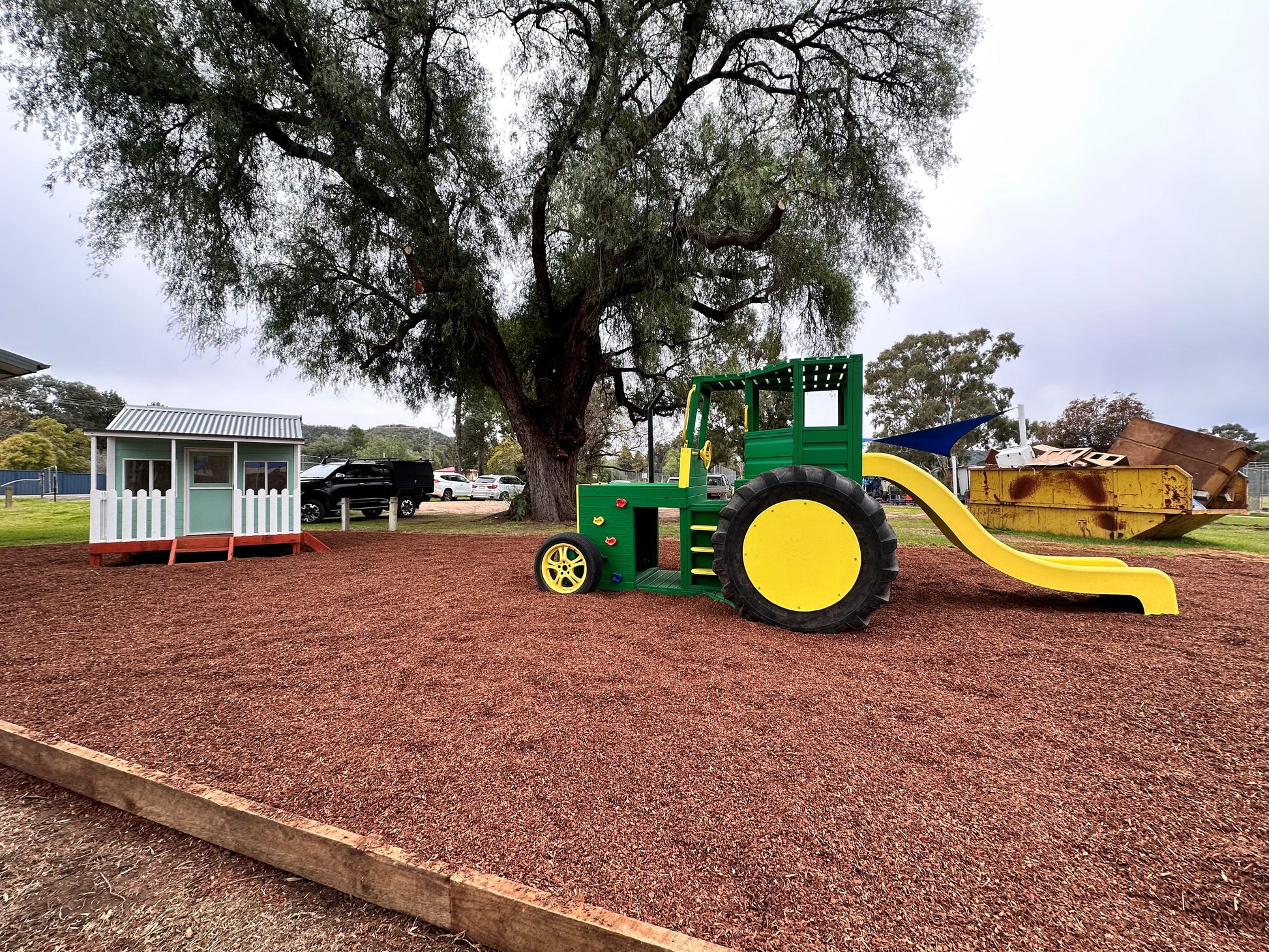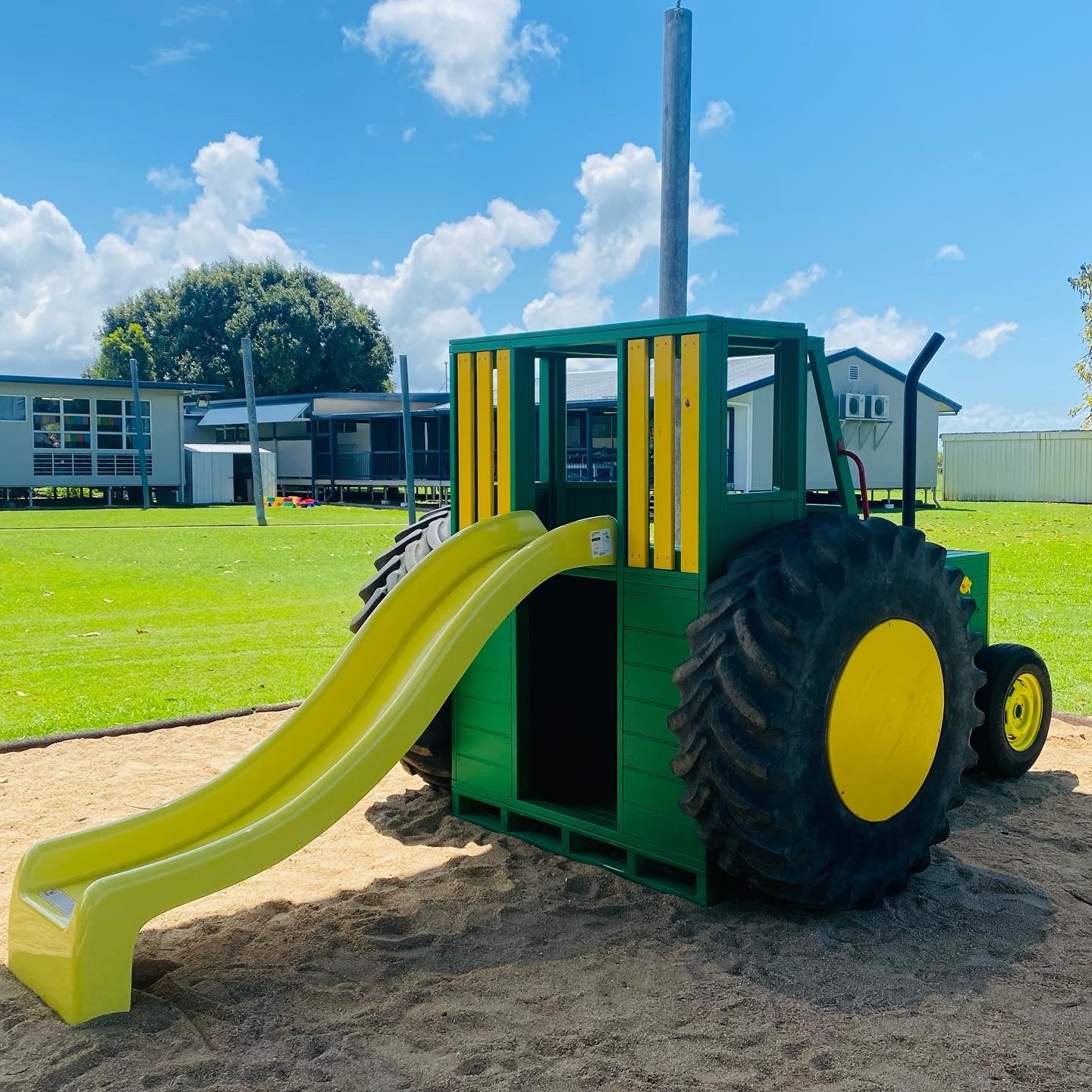 This Tractor is packed full of fun and interactive components for the kids to play on. Included in the price is a Tic-Tac-Toe in the front grill, rock wall stones, a steering wheel, handle grips and a heavy-duty Australian made fibreglass slide (colours may depend on stock availability)