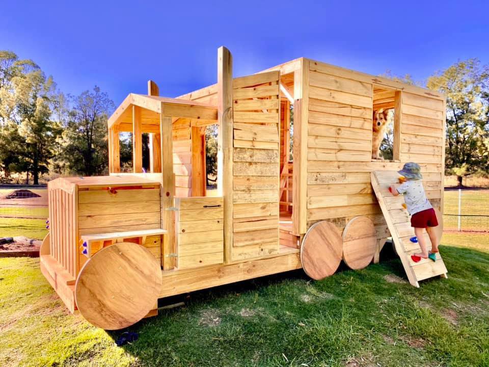 This is one special cubby house. The kids will be able to enjoy playing in the trailer with a 2.2m slide and rock wall coming out each side. You can move around in the cabin that has opening doors. The front has a built-in storage box.