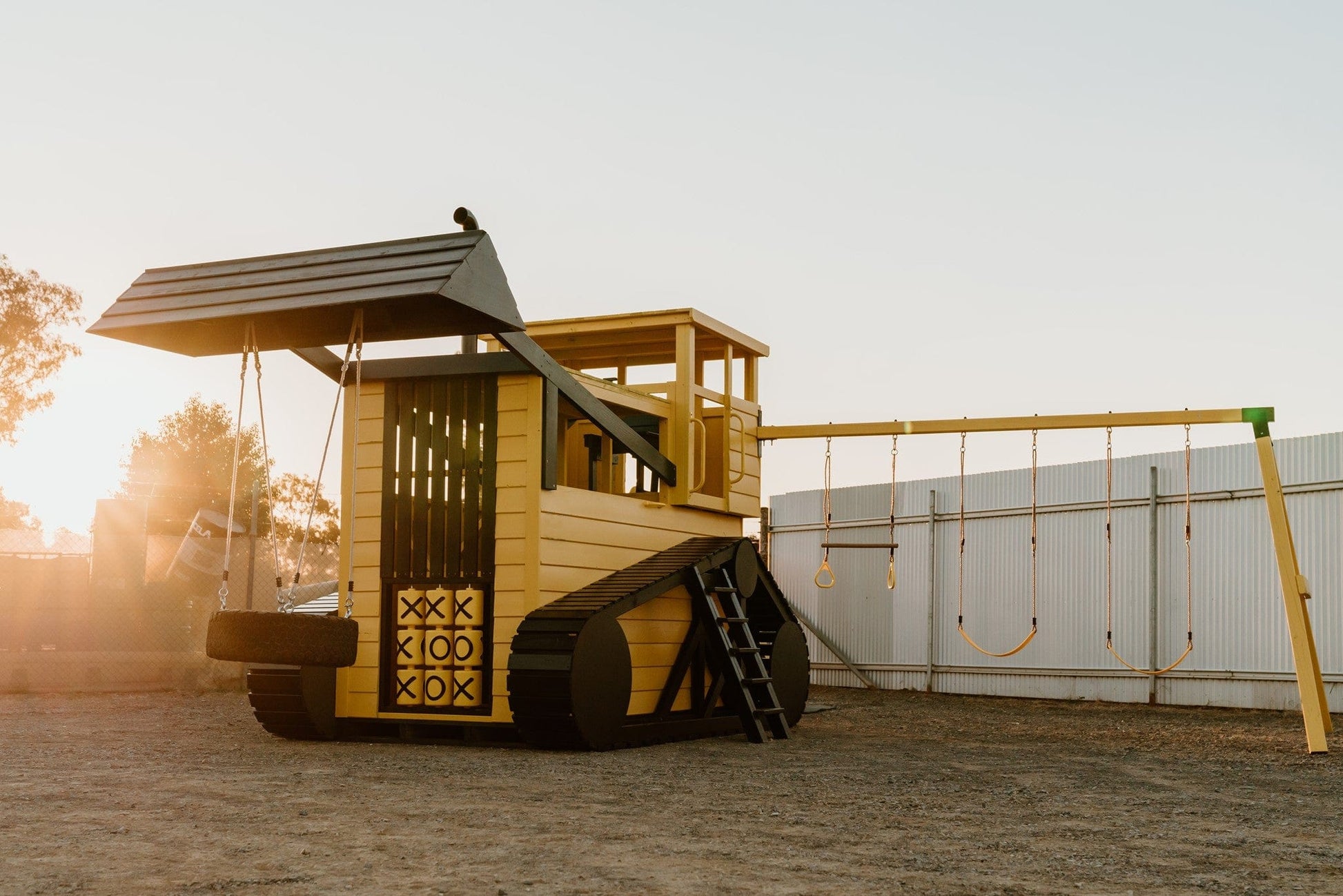 The KBT OXO-spinners is a fun and classic game designed to integrate in your own wooden structure. The spinners are Ø 165 x 230 mm in size.