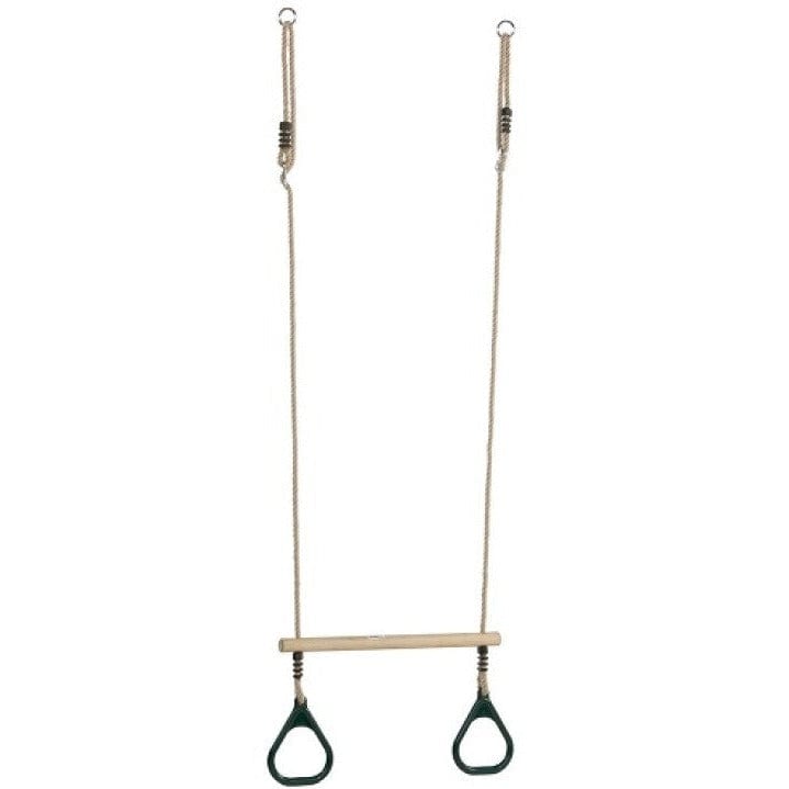 A great addition to any swing set. This is a great acrobatic trapeze with gym rings swing.